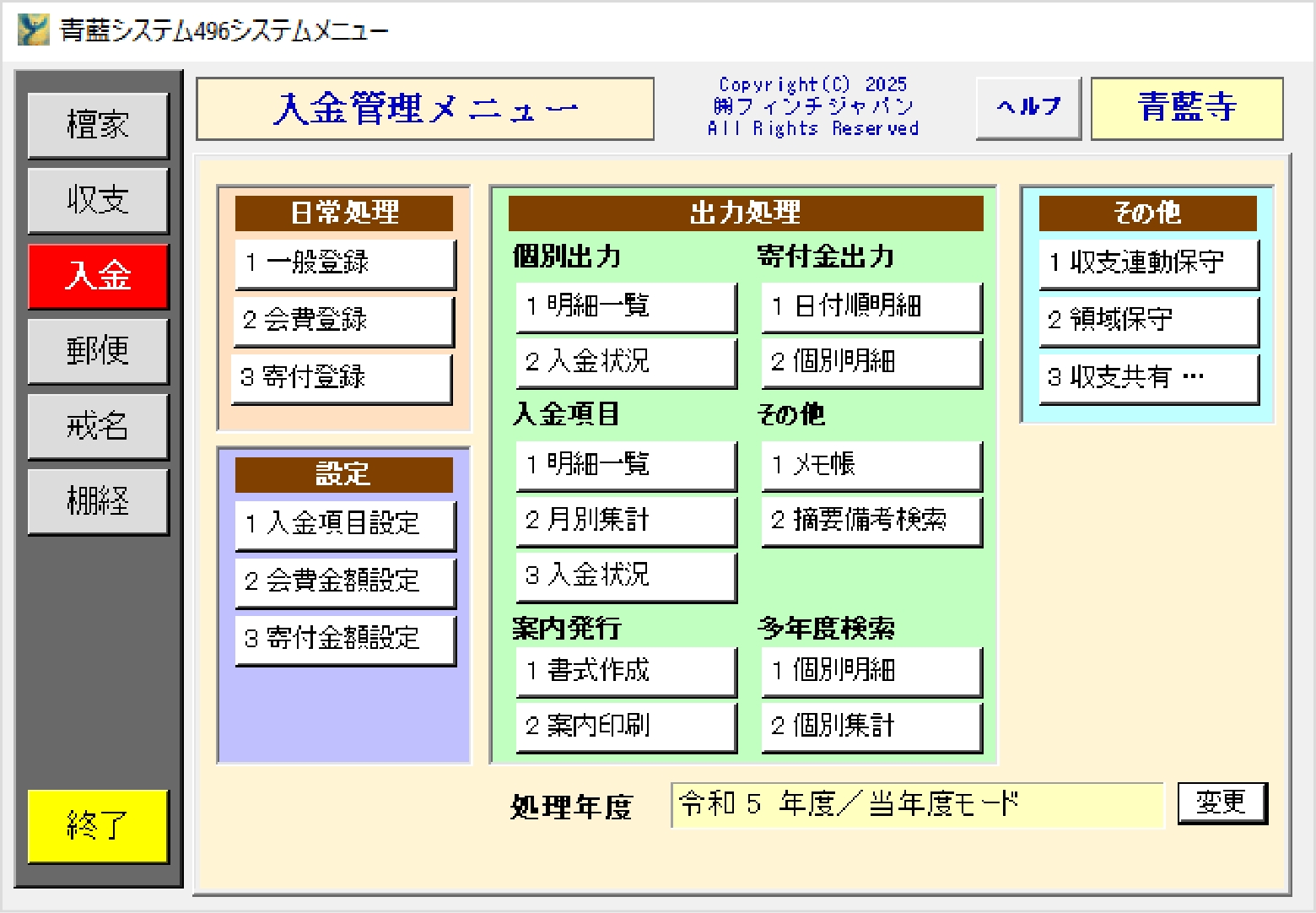 ・ 各種案内発行が可能 ・ 多年度集計による入金履歴の参照が可能